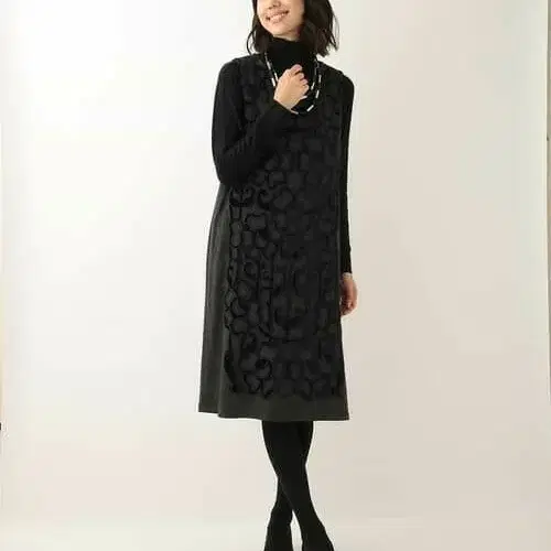 HIROKO BIS 자수 슬리브리스 원피스 다크 그레이 자수