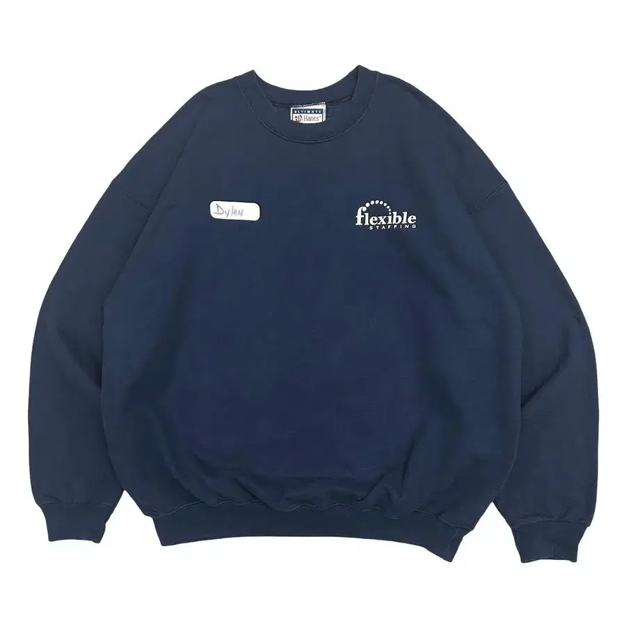 90s 빈티지 맨투맨 미국 기업 로고 올드 Hanes 네이비 L