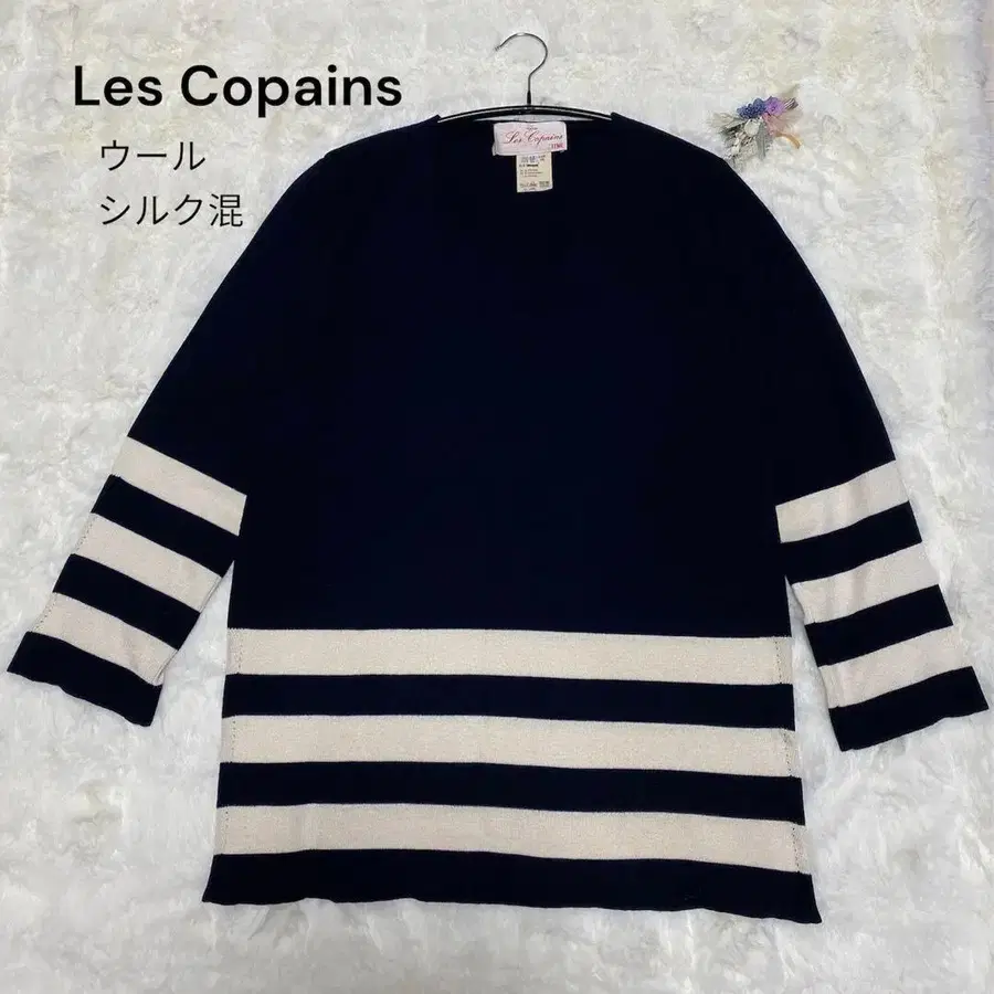 새상품급 Les Copains 레꼬빵 네이비 라나울 실크 니트 42