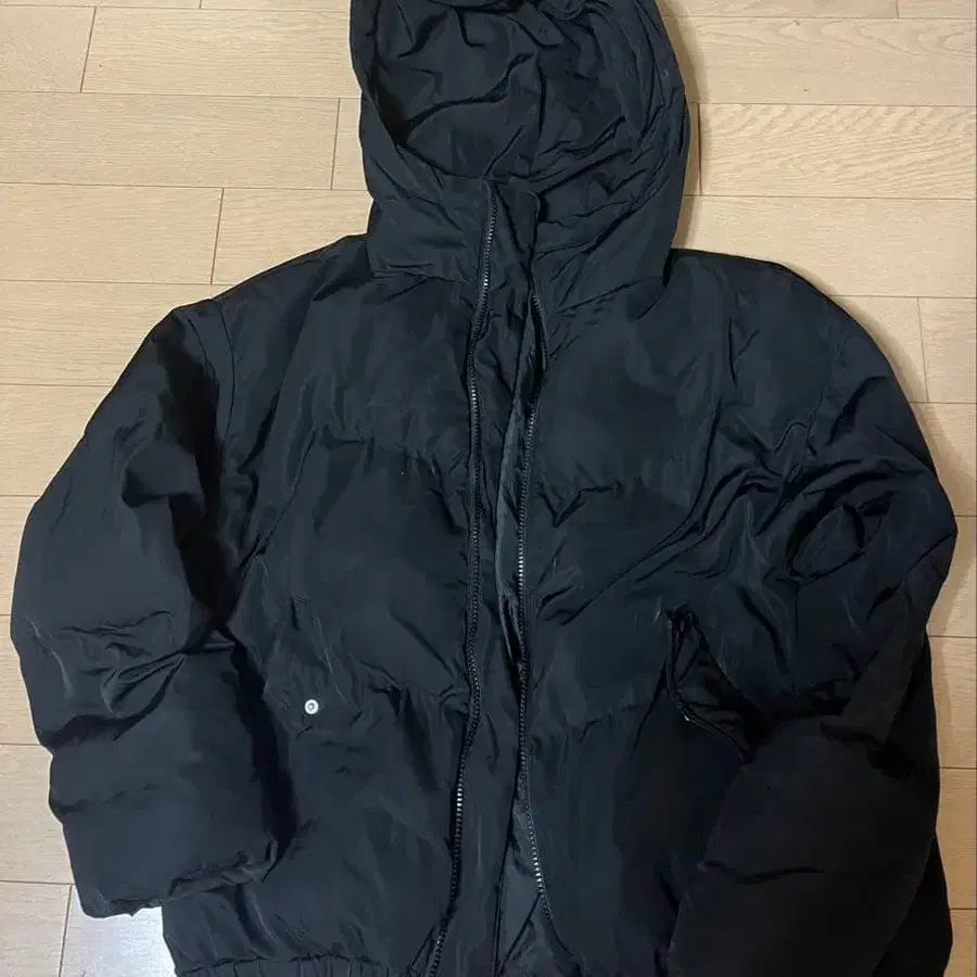 블랙 후드 부착 다운 자켓