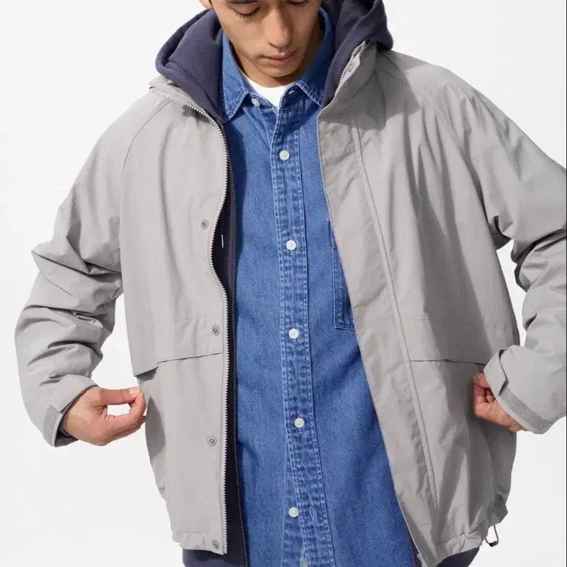 새상품급 25년 모델 유니클로 윈드프루프 스탠드 블루종 그레이 XL