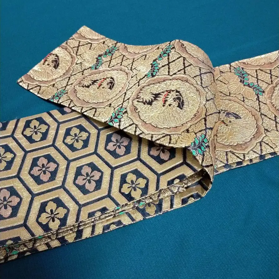 반폭 오비 무용 오비 리버서블 용 육각형 골드 컬러