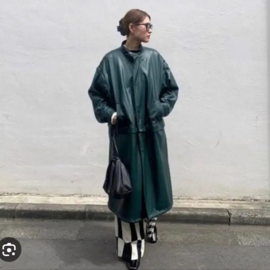 리얼 가죽 같은 표면의 주름 등 디테일까지 신경 쓴 비건 가죽 모즈 코트.