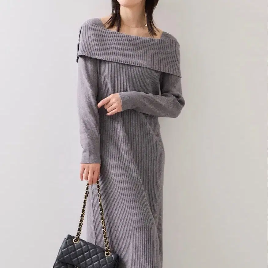 비대칭 오프숄더 리브 니트 아름다운 실루엣 원피스 그레이 VIS