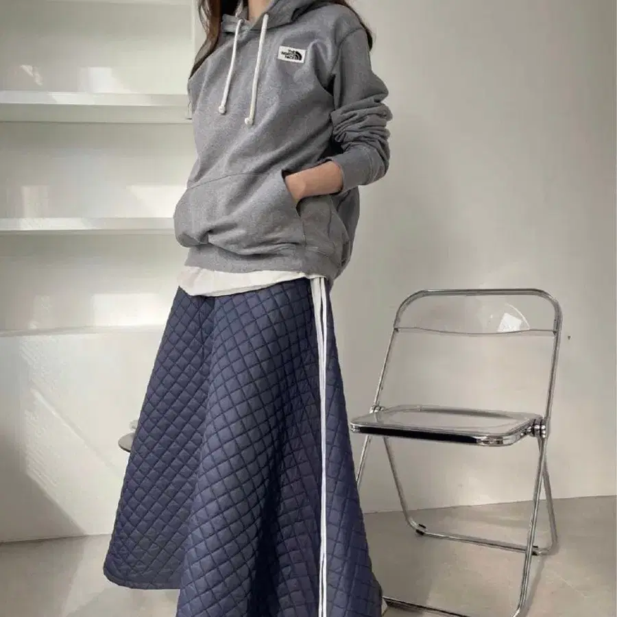 네이비 퀼팅 플레어 스커트 프리 사이즈
