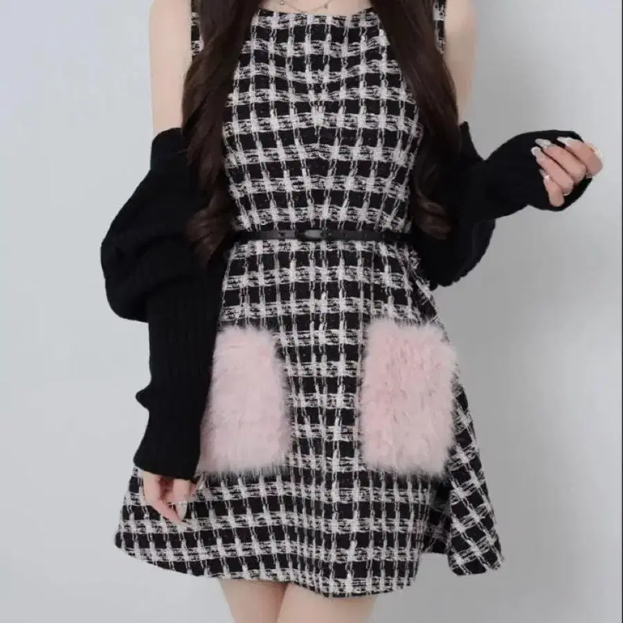 lumignon 트위드 포켓 퍼 드레스 핑크 S