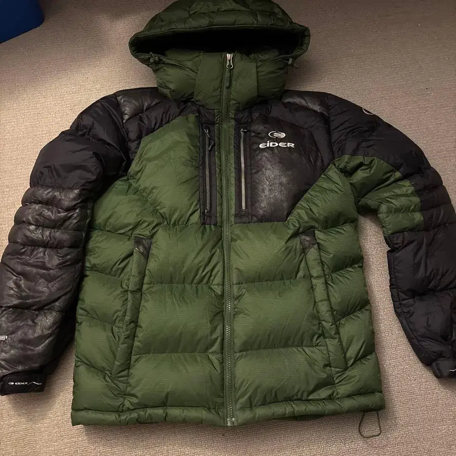 eider 후드 탈부착 가능 다운 자켓 올리브 그린/블랙