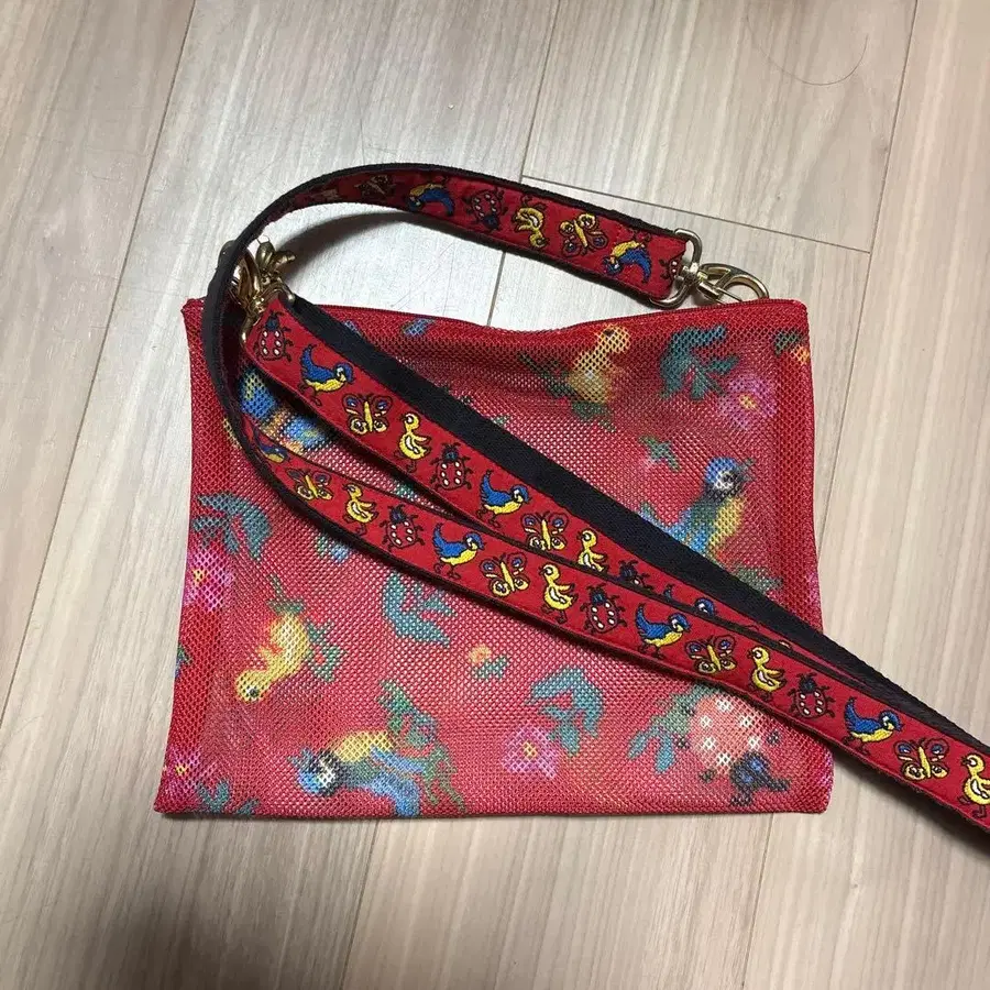 익명 배송 페이러 하이디 스트랩 &D링 포함 메쉬 파우치 레드