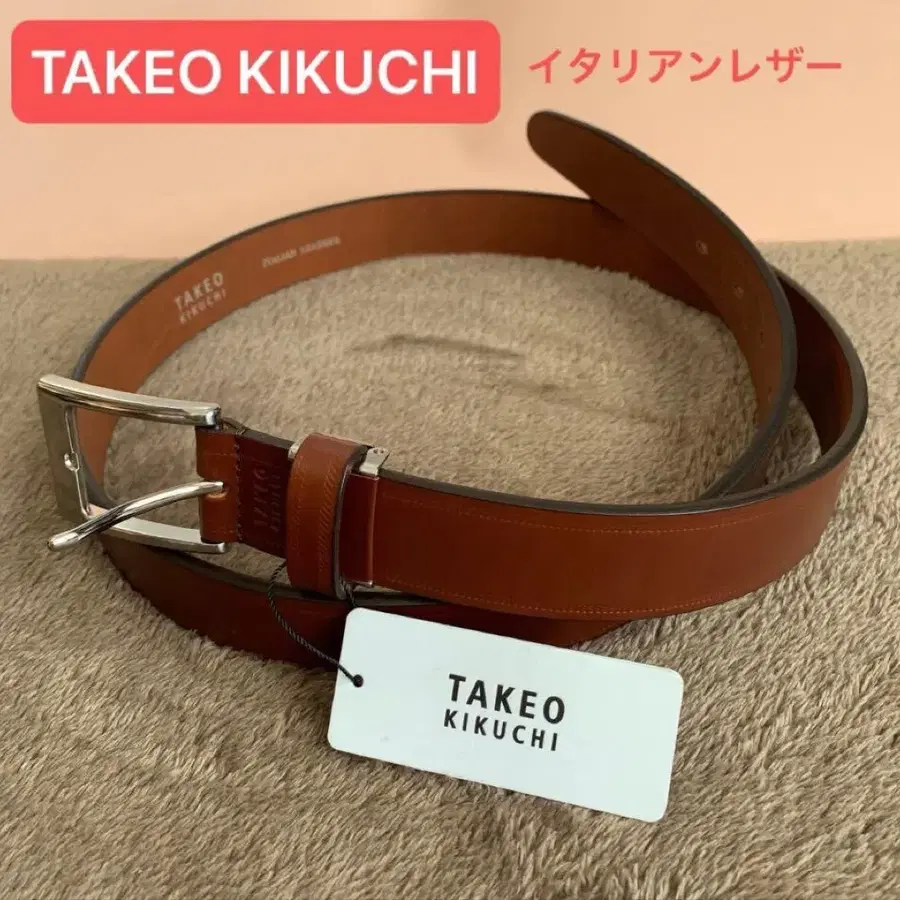 [새상품] 다케오 키쿠치 TAKEO 소가죽 벨트, 이탈리아 가죽, 브라운