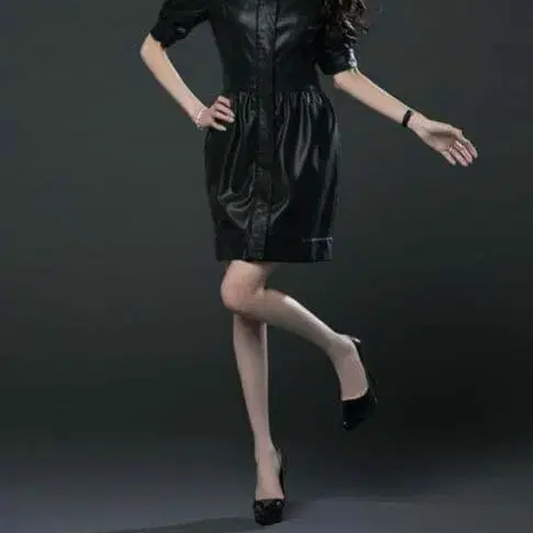 [에밀리아 위즈] 블랙 가죽 7부 소매 원피스