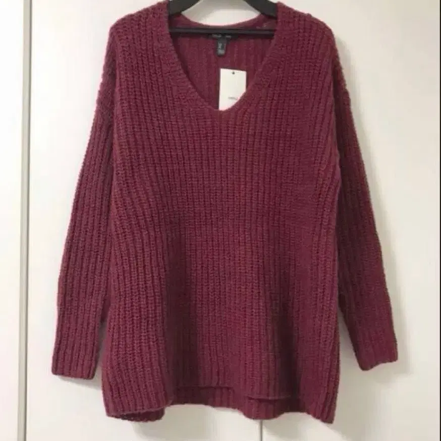 MANGO 보르도 빨간색 V넥 스웨터 니트 M