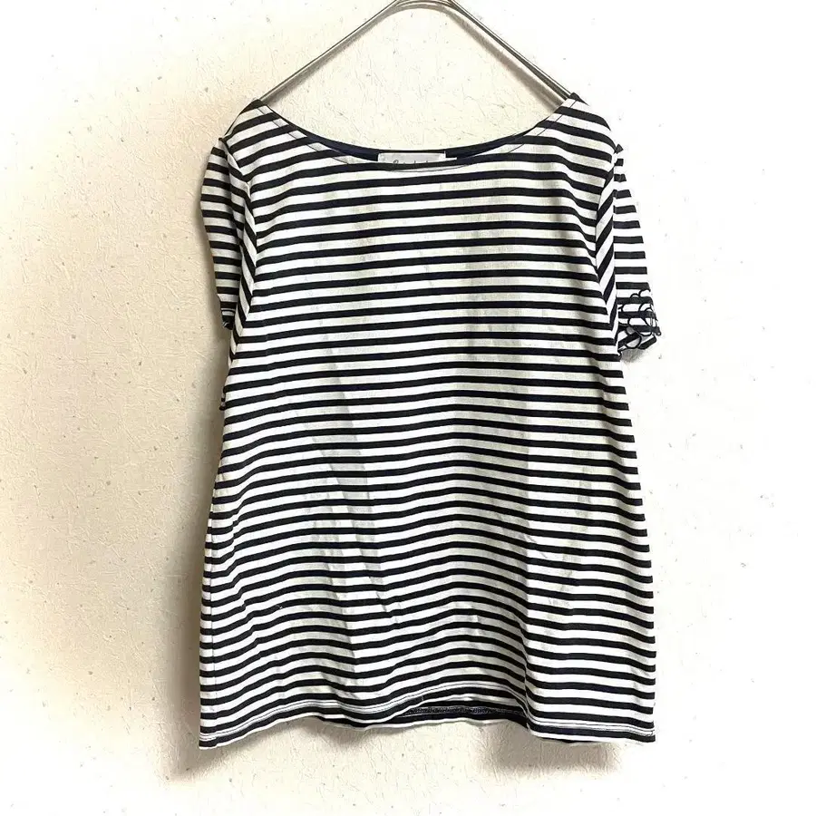 쿠튀르 브로치 티셔츠(M) 꽃무늬 보더 무늬 걸리시 보트넥