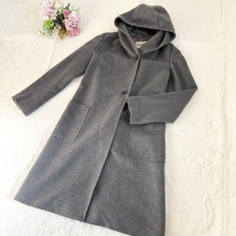 ROPE 울 캐시미어 후데트 코트 A라인 M 그레이
