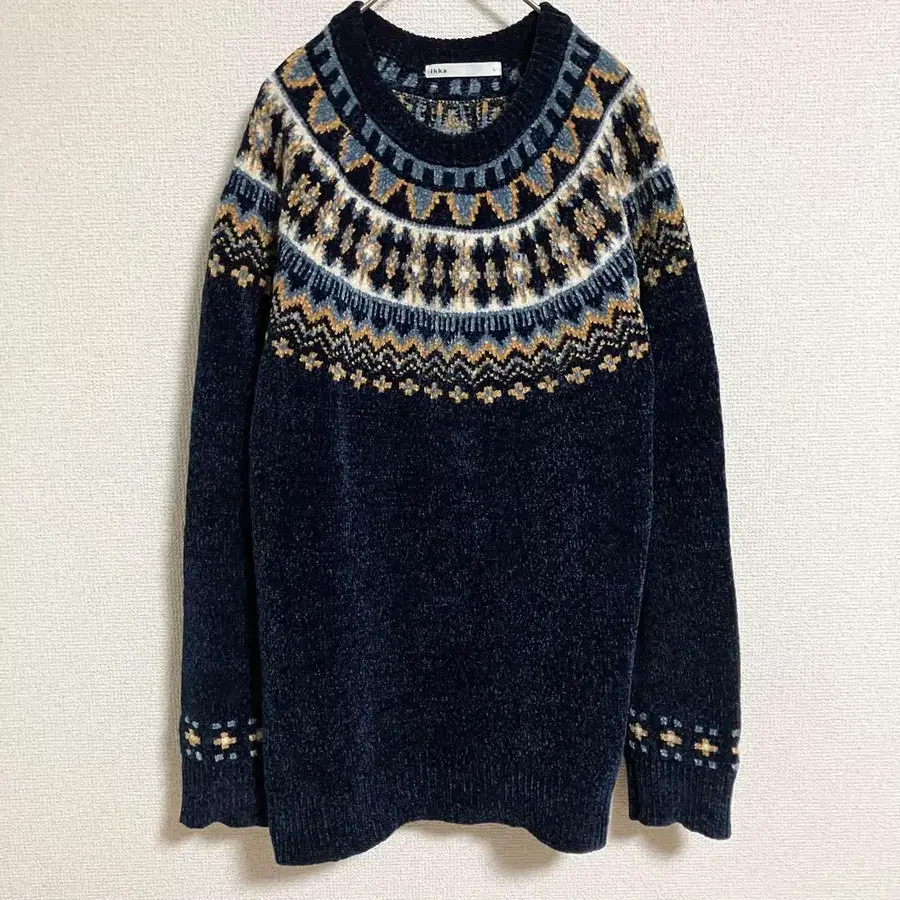 이카 긴팔 니트 스웨터 페어아일 패턴 L 사이즈 겨울 상품 이카