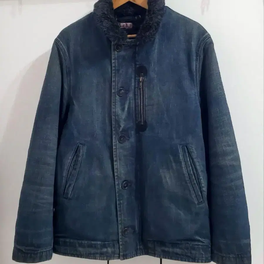 BlueBlue 데님 덱 자켓 해군 빈티지 가공