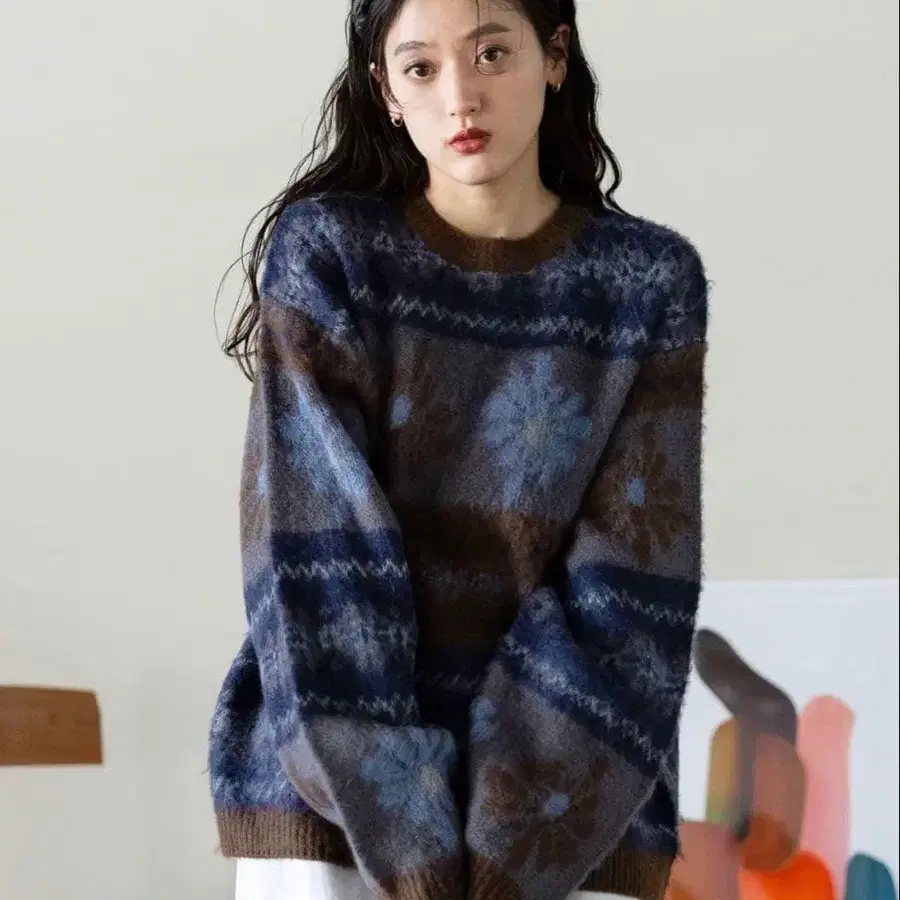 [ RAGE BLUE ] 새상품 노르딕 무늬 루즈핏 니트 스웨터
