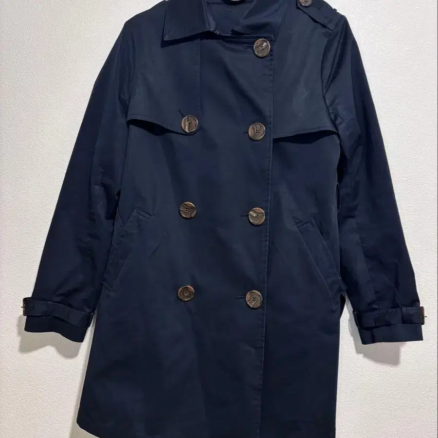 여성용 M 트렌치코트 네이비 컬러 더블 브레스트 허리 벨트 포함