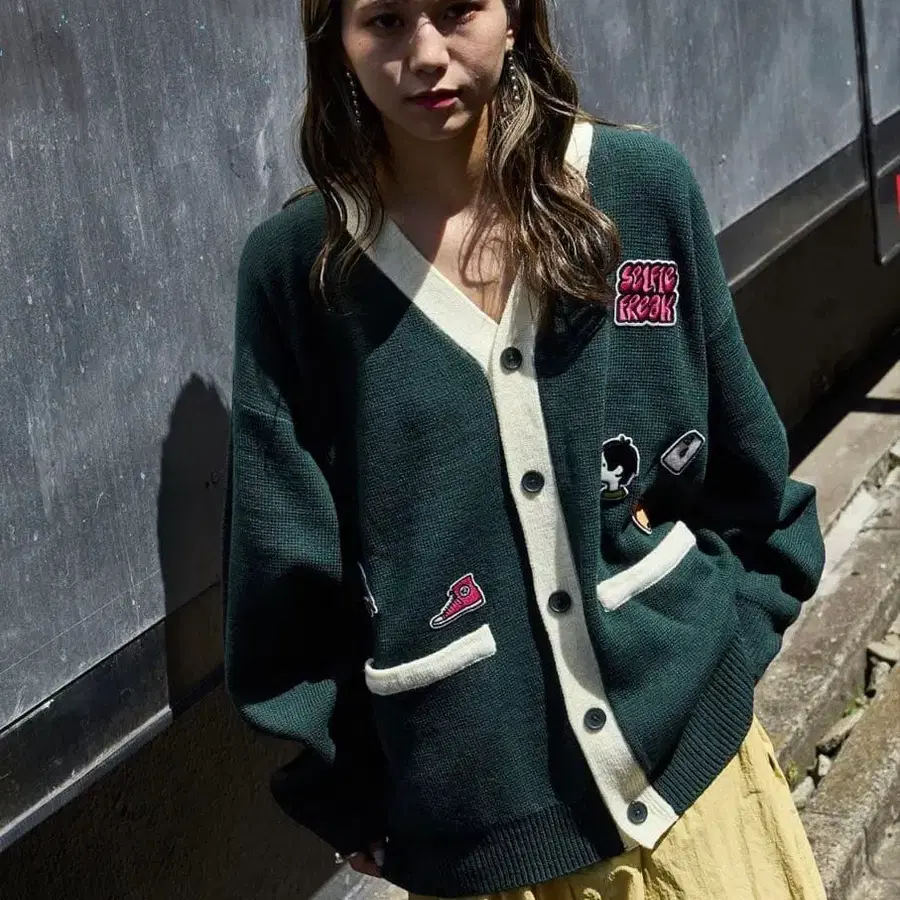 가디건 니트 펠트 와펜