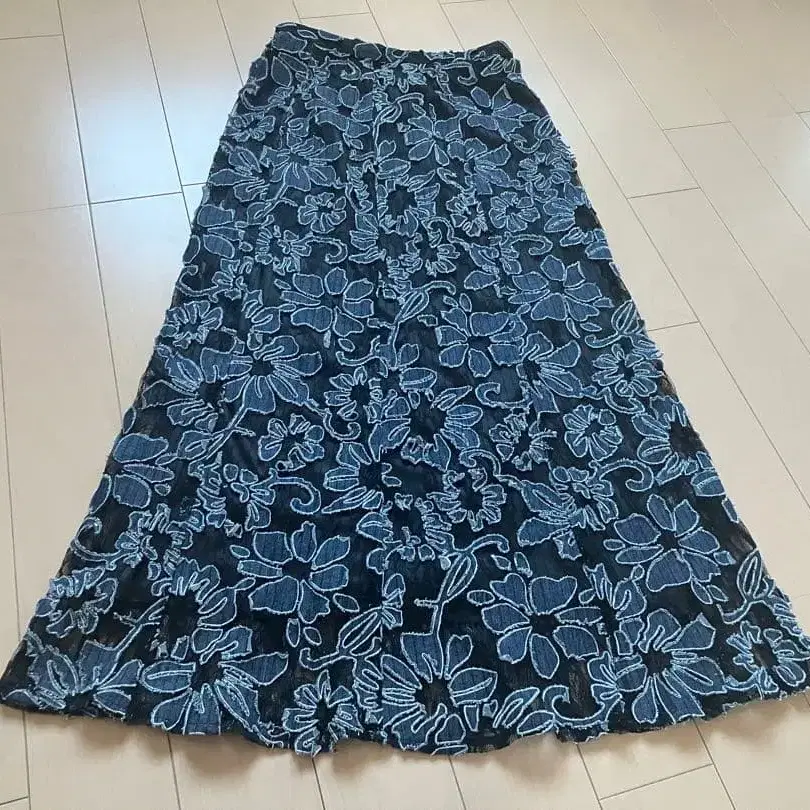 RANDA 란다 꽃무늬 데님 레이스 롱 스커트 플레어