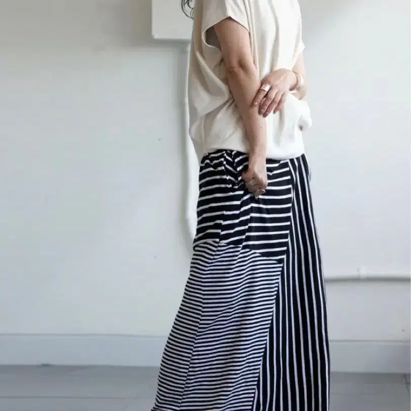완판템*antiqua*보더 x 스트라이프 패턴 롱 스커트
