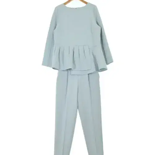 [ 실측치수(cm) ] 상의 가슴 너비:43.5cm, 상의 어깨 너비:38cm, 상의 소매 길이:53cm, 상의 기장:64cm, 팬츠 허리:68cm, 팬츠 밑단:28.5cm, 팬츠 힙:74cm, 팬츠 허벅지:51cm, 팬츠 밑위:33cm, 팬츠 인심:64cm