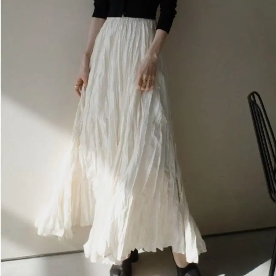 amel 와셔 볼륨 롱 스커트 아이보리 주름 가공 긴 길이
