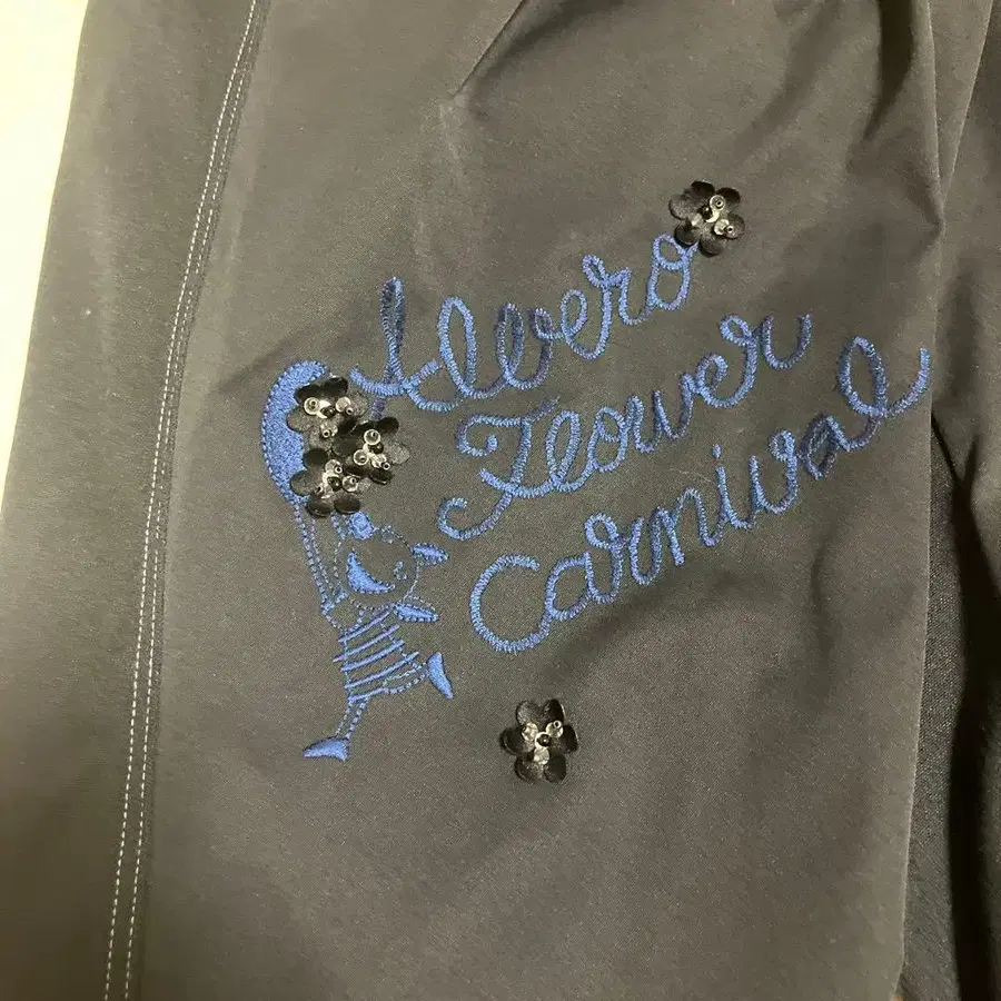 알베로베로 돼지 자수로 꽃과 비즈 장식을 한 팬츠입니다