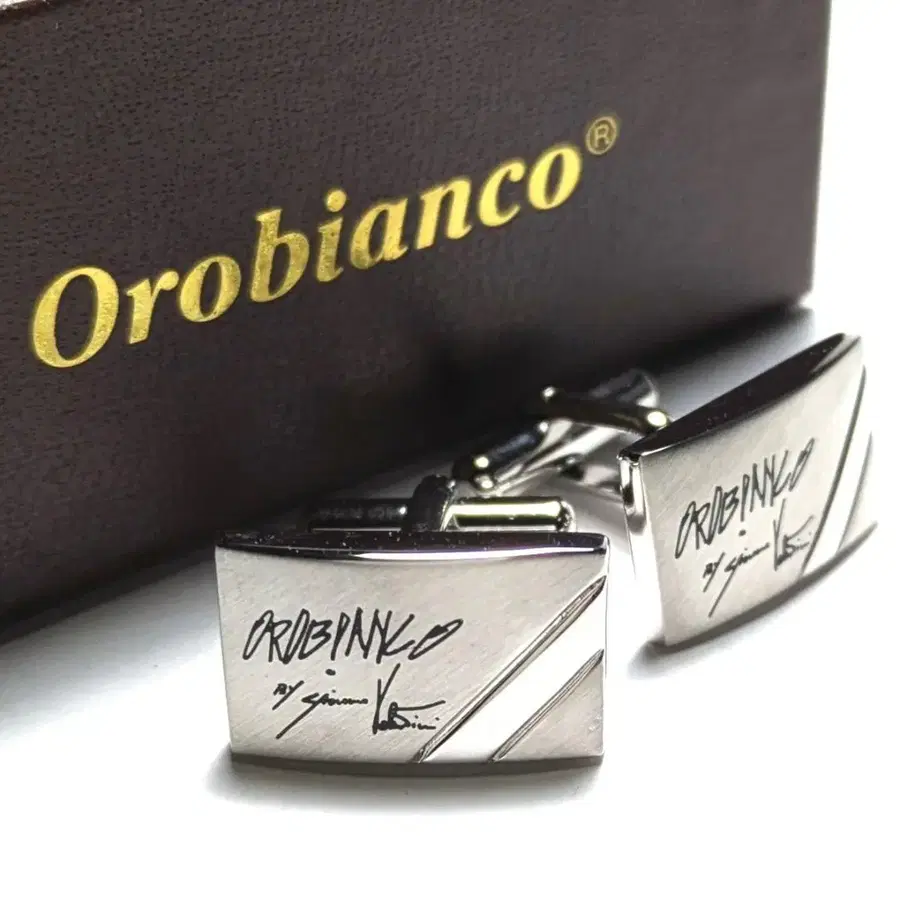 oac141 새상품 오로비안코 커프스 링크 실버 스퀘어 로고