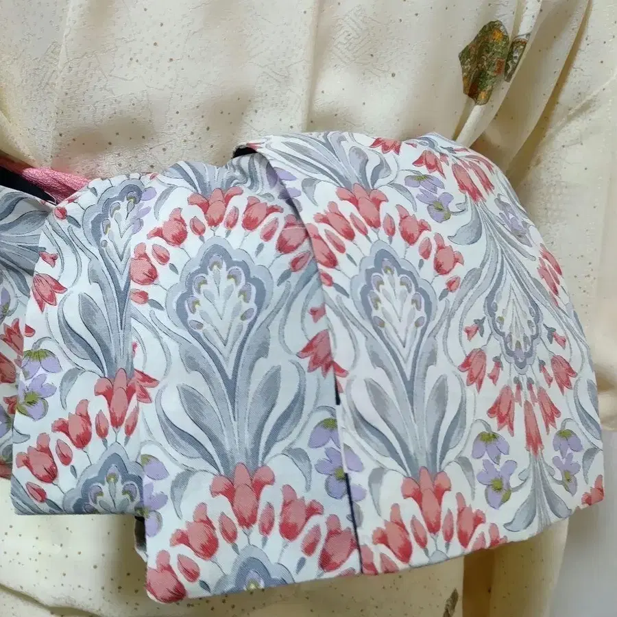 어른용 병코대 반폭 오비 핸드메이드 미오 No.2391 꽃무늬 적자색