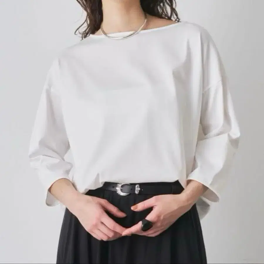 블라우스처럼 사용할 수 있는 깔끔한 7부 소매 티셔츠