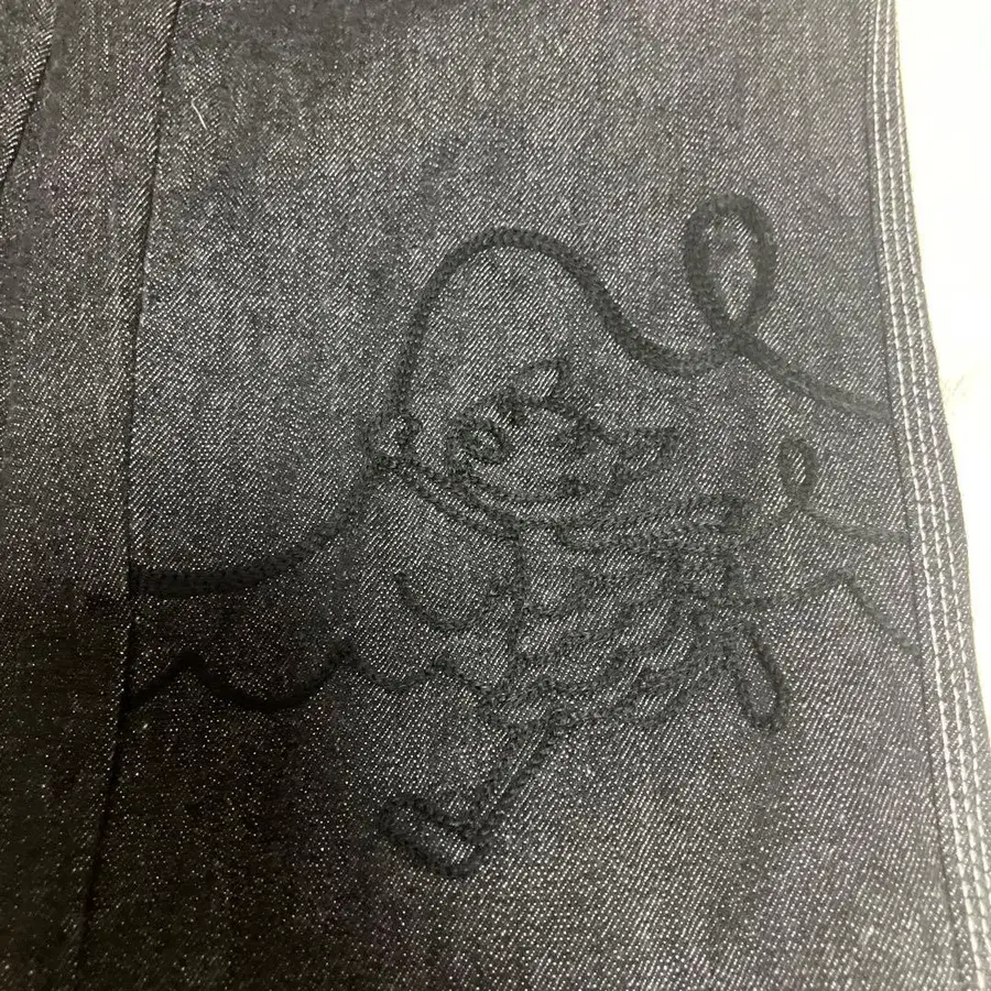 알베로베로 돼지 자수 장식 블랙 데님 팬츠