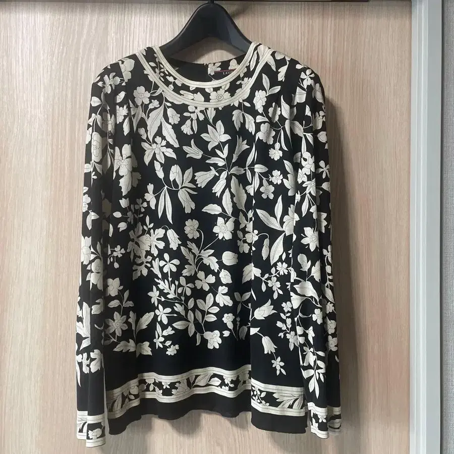 LEONARD 꽃무늬 긴팔 상의 블랙/화이트