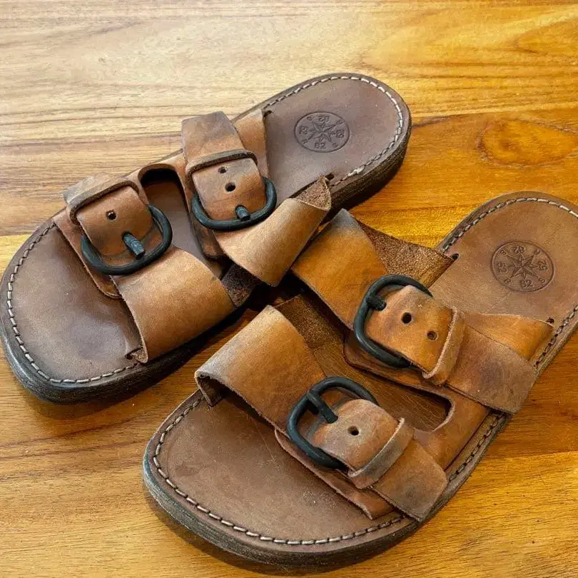 가죽 더블 버클 샌들 36 cuoio