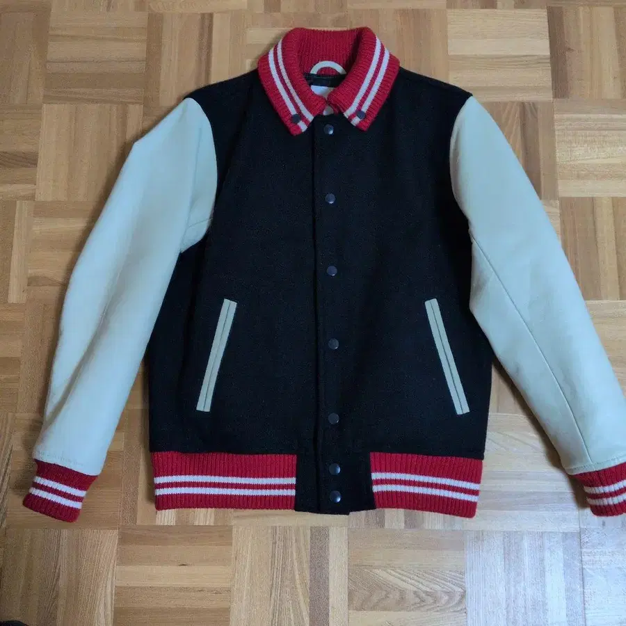 BEAMS 바시티 자켓 블랙/빨간색/베이지