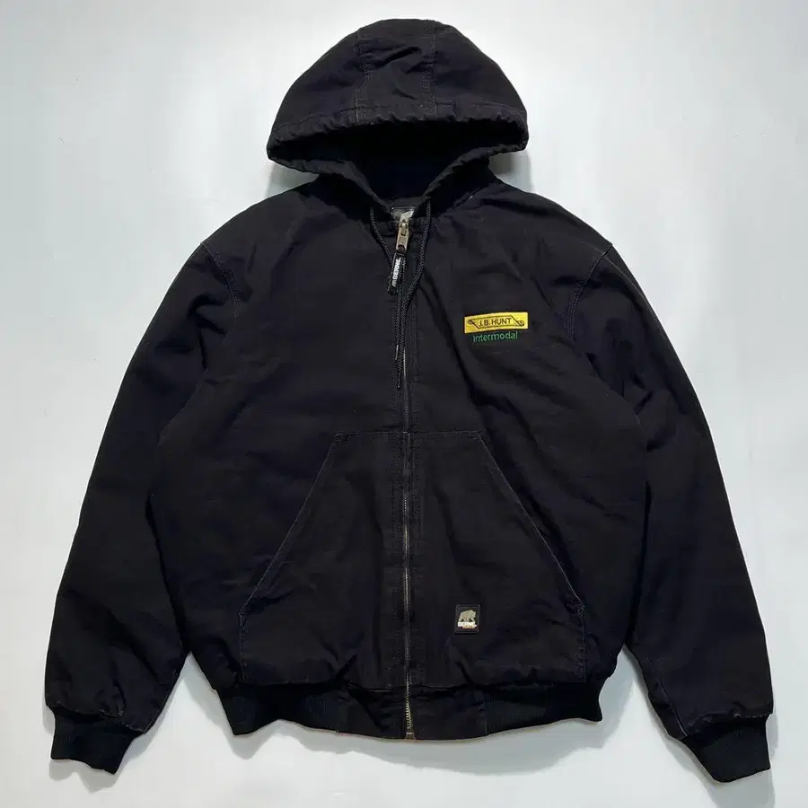 BERNE의 풀 집업 후디드 워크 자켓. J.B. HUNT Intermodal 기업 로고 자수 포함.