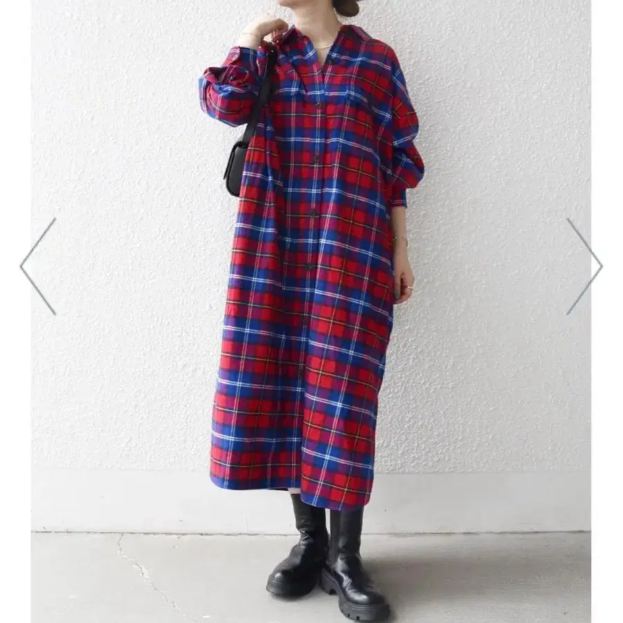 [새상품급] SHIPS any 타탄 체크 롱 셔츠 원피스