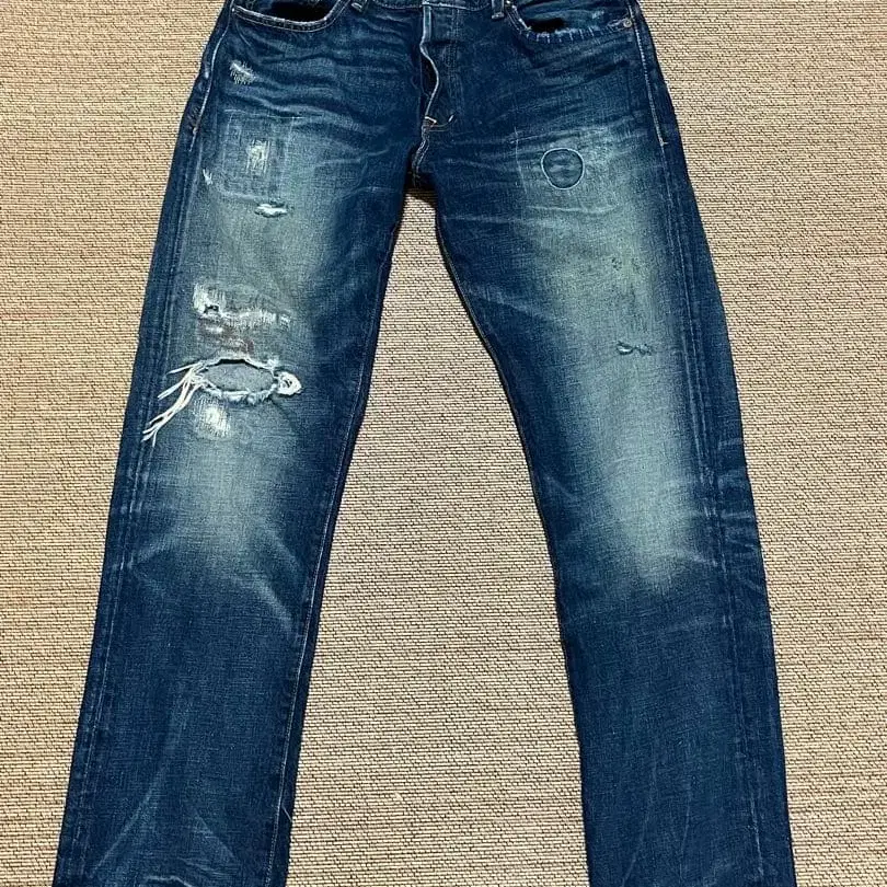 Denim & Supply 데미지 가공 다크 블루 스트레이트 데님