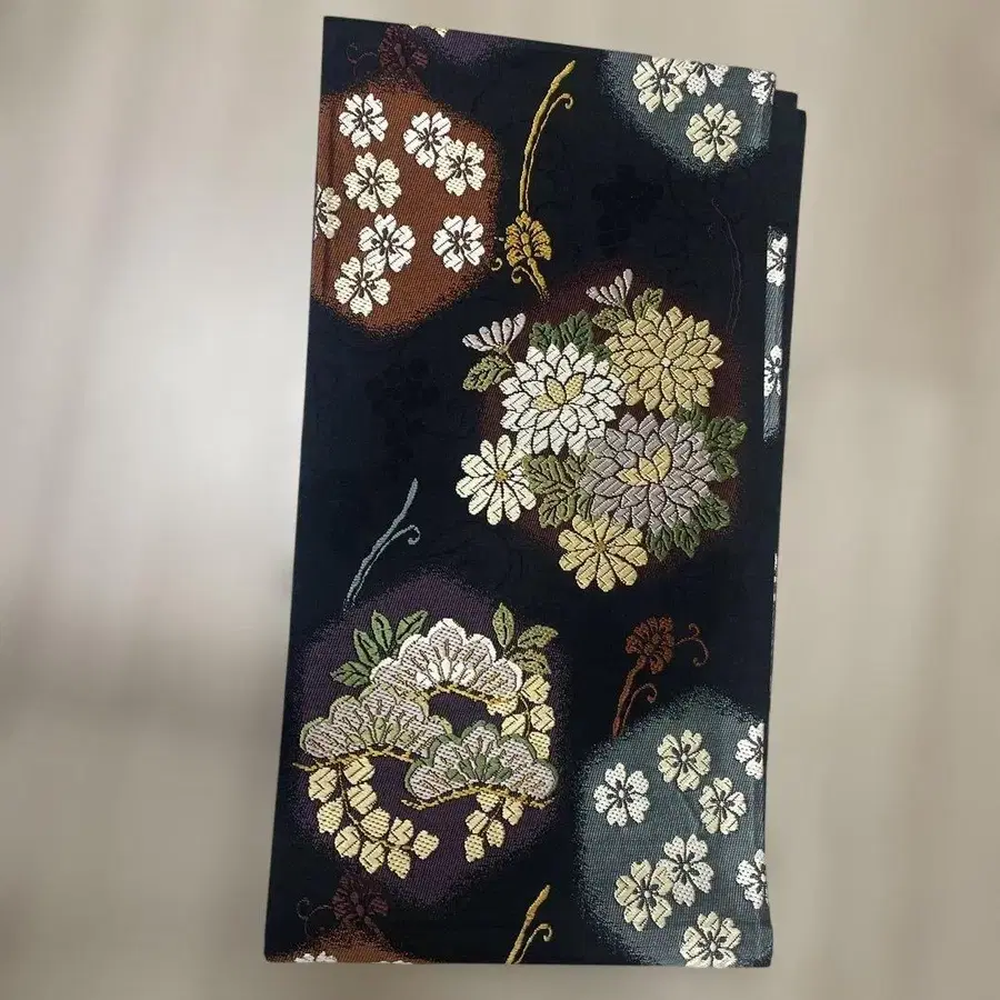 꽃무늬 자수 후쿠로 오비 블랙 베이스 후리소데 호몬기