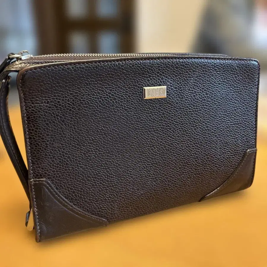 DAKS 가죽 클러치백 세컨드 백 다크 브라운