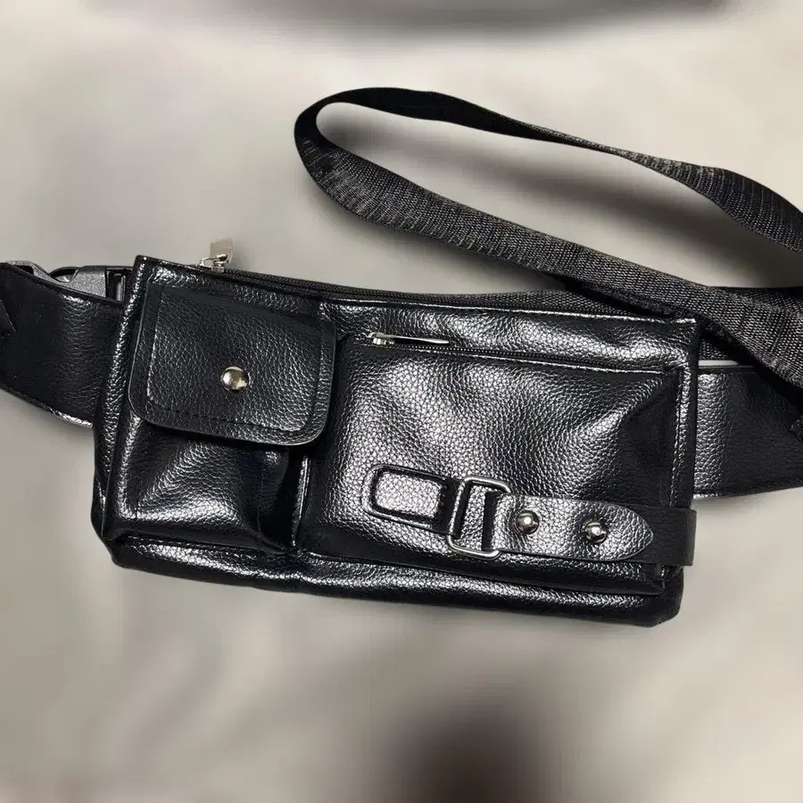 블랙 바디백 합성 피혁