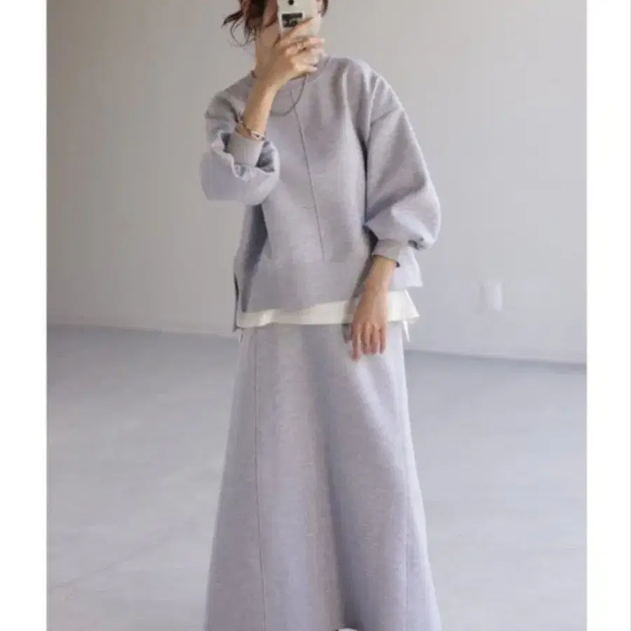 HUG.U 맨투맨 상의 스커트 셋업 그레이