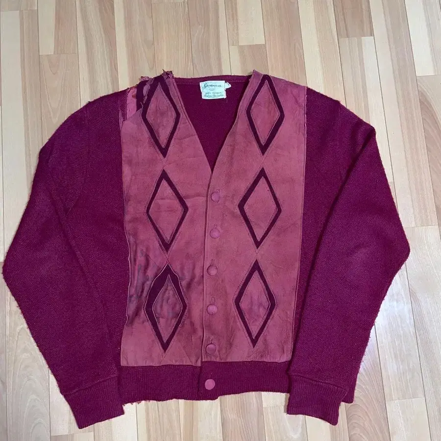 60s~70s USA 스웨이드 절개 Orlon Acrylic 와인 레드