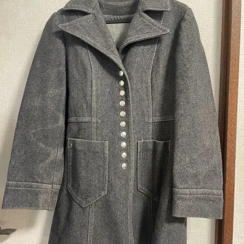 빈티지 코트 허리 벨트 포함 그레이 구제 의류