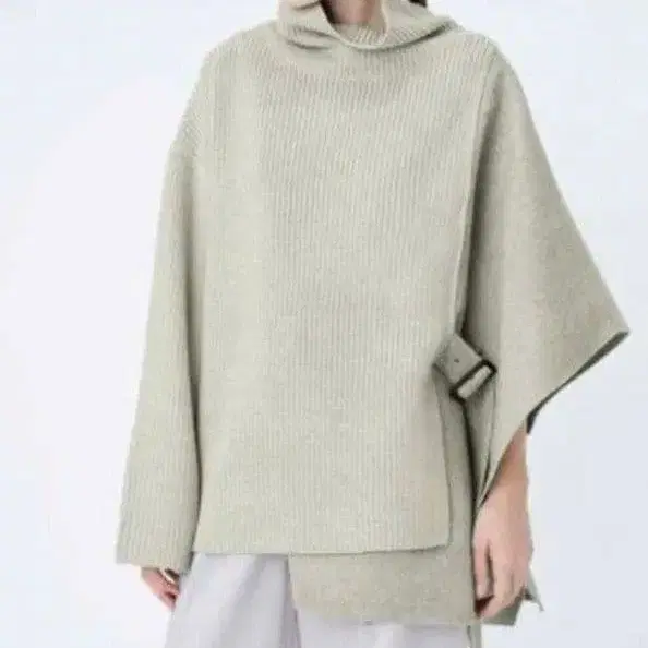 터틀넥 터틀 니트 하이넥 도킹 이소재 판초 니트 오버 사이즈 체형 커버 니트 도킹 드라이 치노 판초풍 벨트 가죽 카우 레더