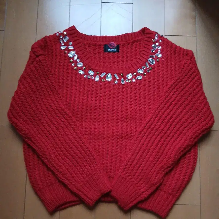 DaTuRa 빨간색 비쥬 장식 니트 스웨터