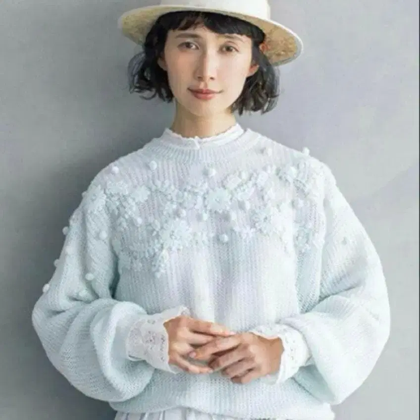 kazumi x Samansa Mos2 린넨 꽃 자수 2WAY 니트 민트