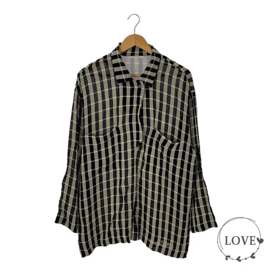 ★ 최종 가격 ★ ZAN ZARA 상의 튜닉 긴팔 스탠다드 칼라 플레어 셔츠 여성용 블랙 그레이 체크 무늬 9 상의