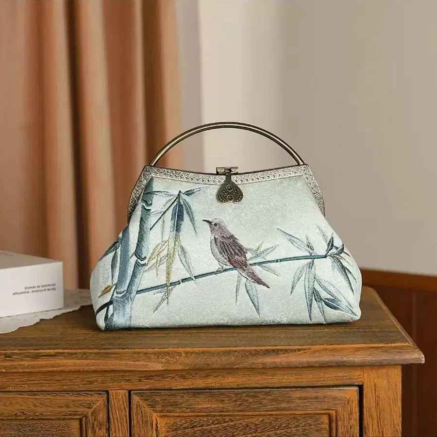 방문해 주셔서 감사합니다. 결혼식, 입학식, 졸업식, 식사 모임 등 다양한 장면에 사용하실 수 있습니다! 대나무와 새 자수가 놓인 고급 핸드백입니다. 연한 그린 색상의 원단에 대나무의 그린 색과 새의 차분한 색감이 어우러져 일본풍의 분위기를 자아냅니다. 금속제 손잡이는 앤티크풍의 질감으로 고급스러움을 더했습니다. 안쪽은 부드러운 소재로 소중한 짐을 보호합니다. 일본 의류에도 서양 의류에도 잘 어울리며, 다양한 장면에서 활약하는 아이템입니다. [ 소재 ] 폴리에스테르 [ 사이즈 ] 약 가로 24cm x 세로 15cm x 바닥 8.5cm ( 개인 측정으로 인해 약간의 오차는 양해 부탁드립니다. ) ※ 꽃 자수의 크기와 위치는 개체 차이가 있으니 주의해 주십시오. ※ 질문이 있으시면 언제든지 댓글로 문의해 주세요.