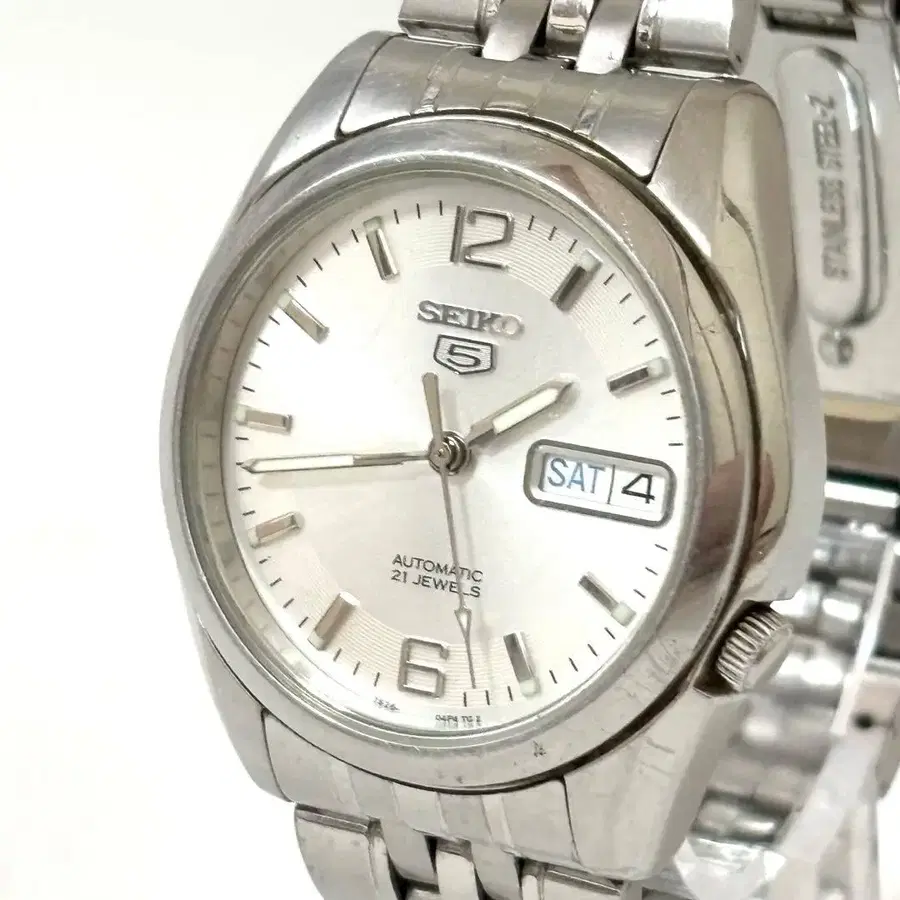 새상품급 작동 SEIKO 5 자동 태엽 뒷면 투명 3침 요일날짜 실버