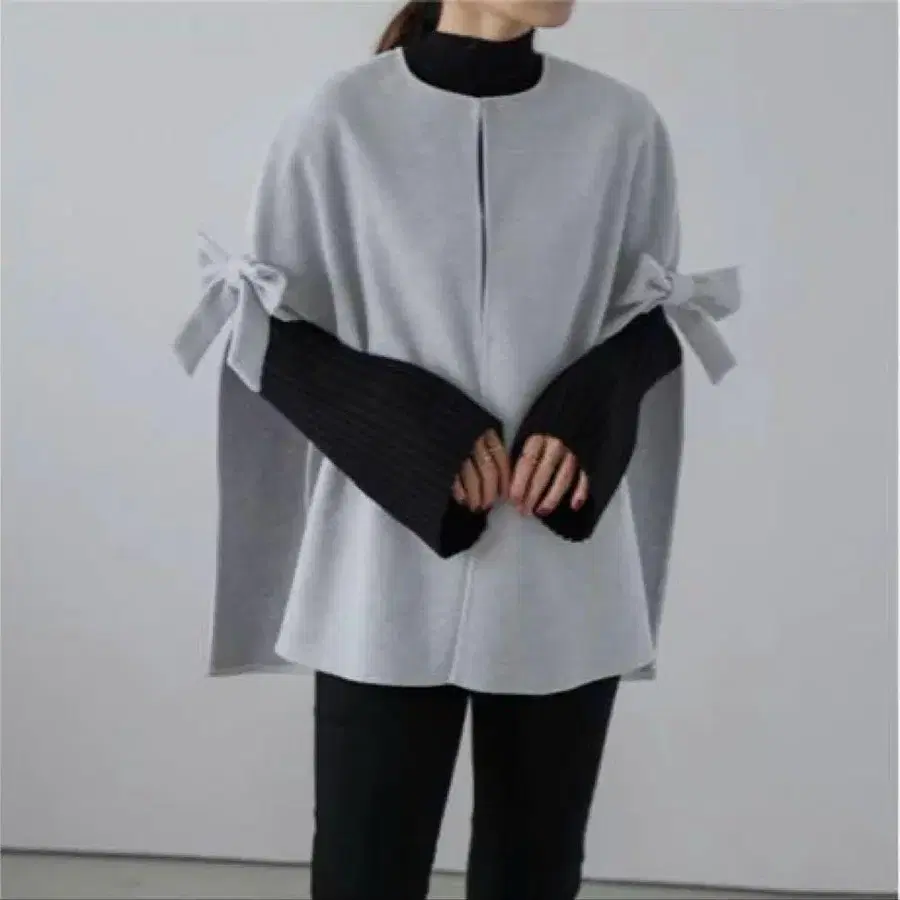 AMELY 사이드 리본 케이프 코트 그레이 판초